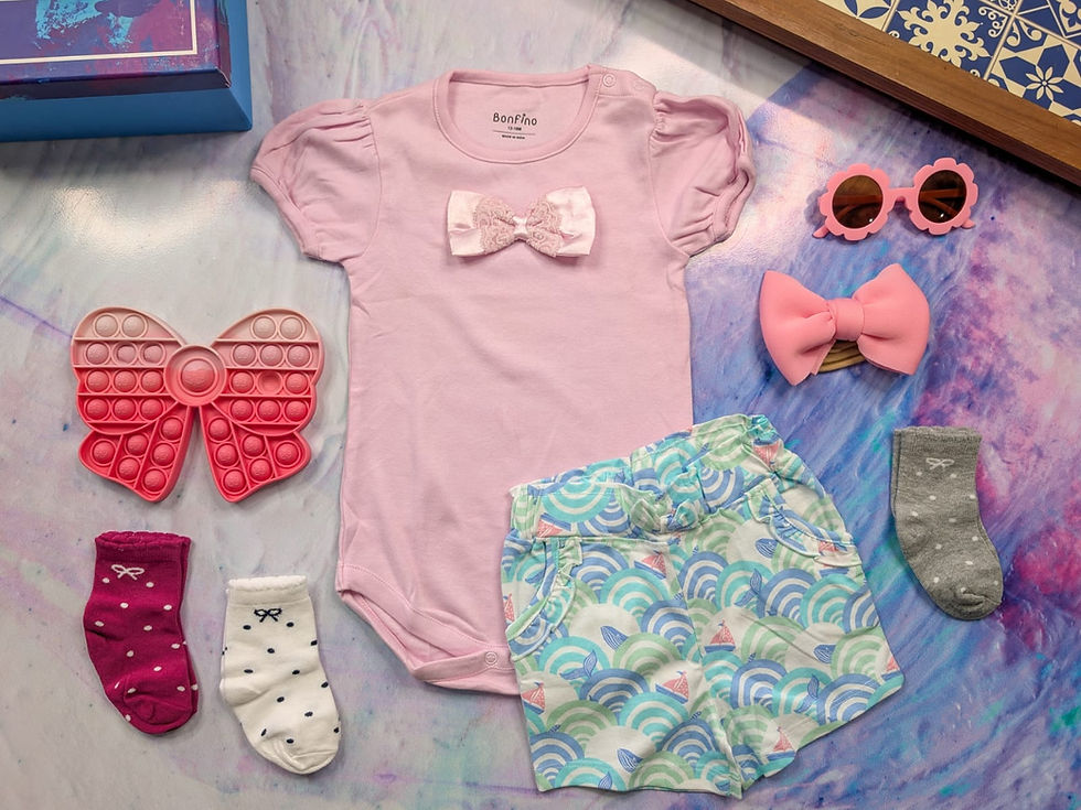 - 1 Babyhug Cotton Shorts with Beach Print with Bow